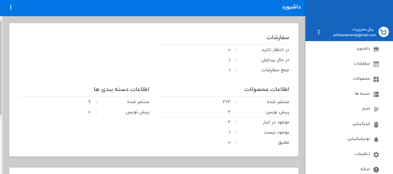 - افزودن سفارش جدید از طریق پنل مدیریت